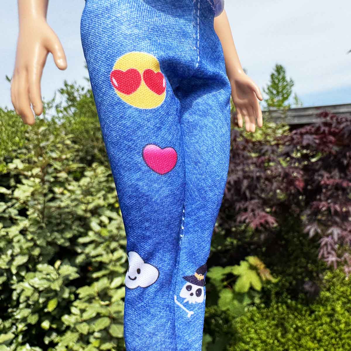 Barbie outfit met wit rood T-shirt met opdruk en smiley jeans